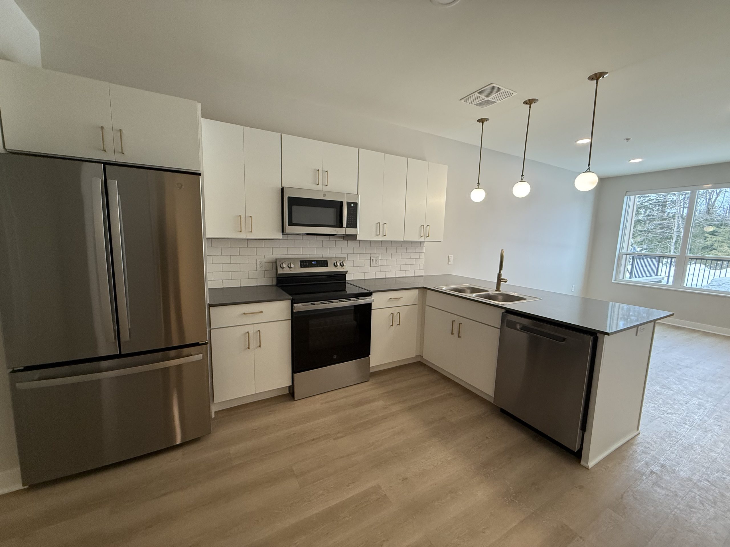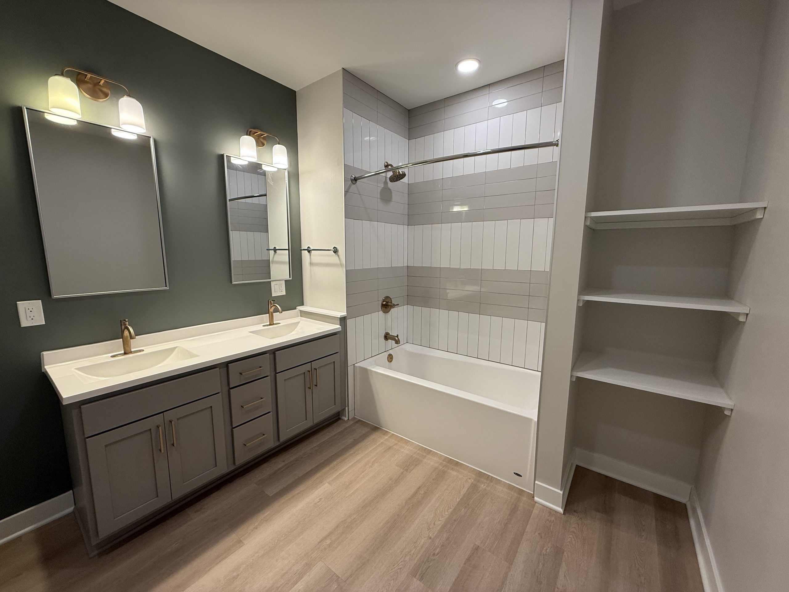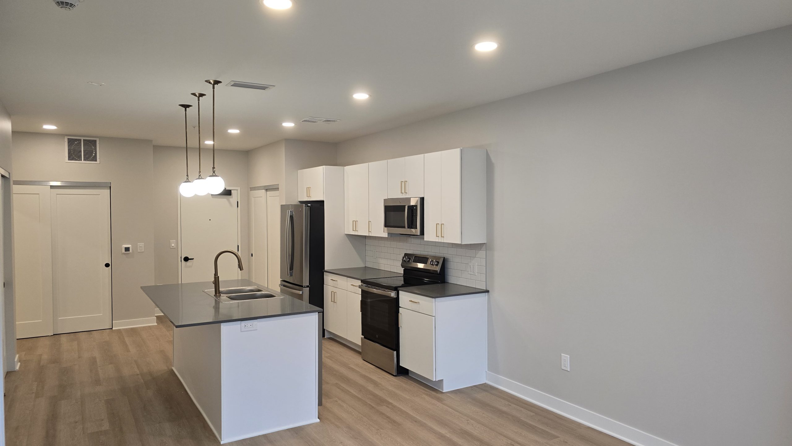 Every unit comes equipped with full-sized washers and dryers, expansive windows for natural light, luxury vinyl plank flooring, sleek tile backsplashes, walk-in closets, and tiled tubs or showers. Keyless entry systems add an extra layer of security and ease for daily living.