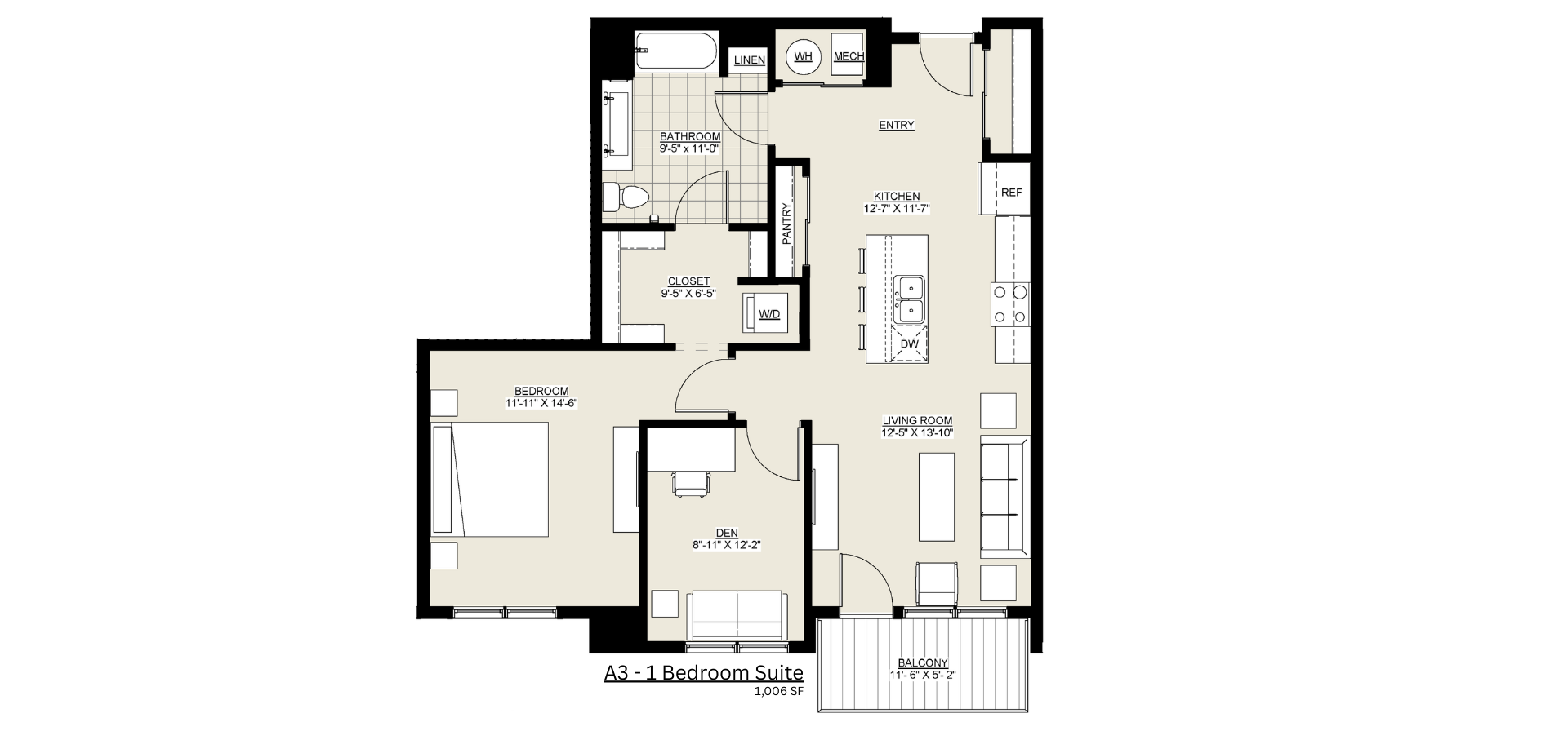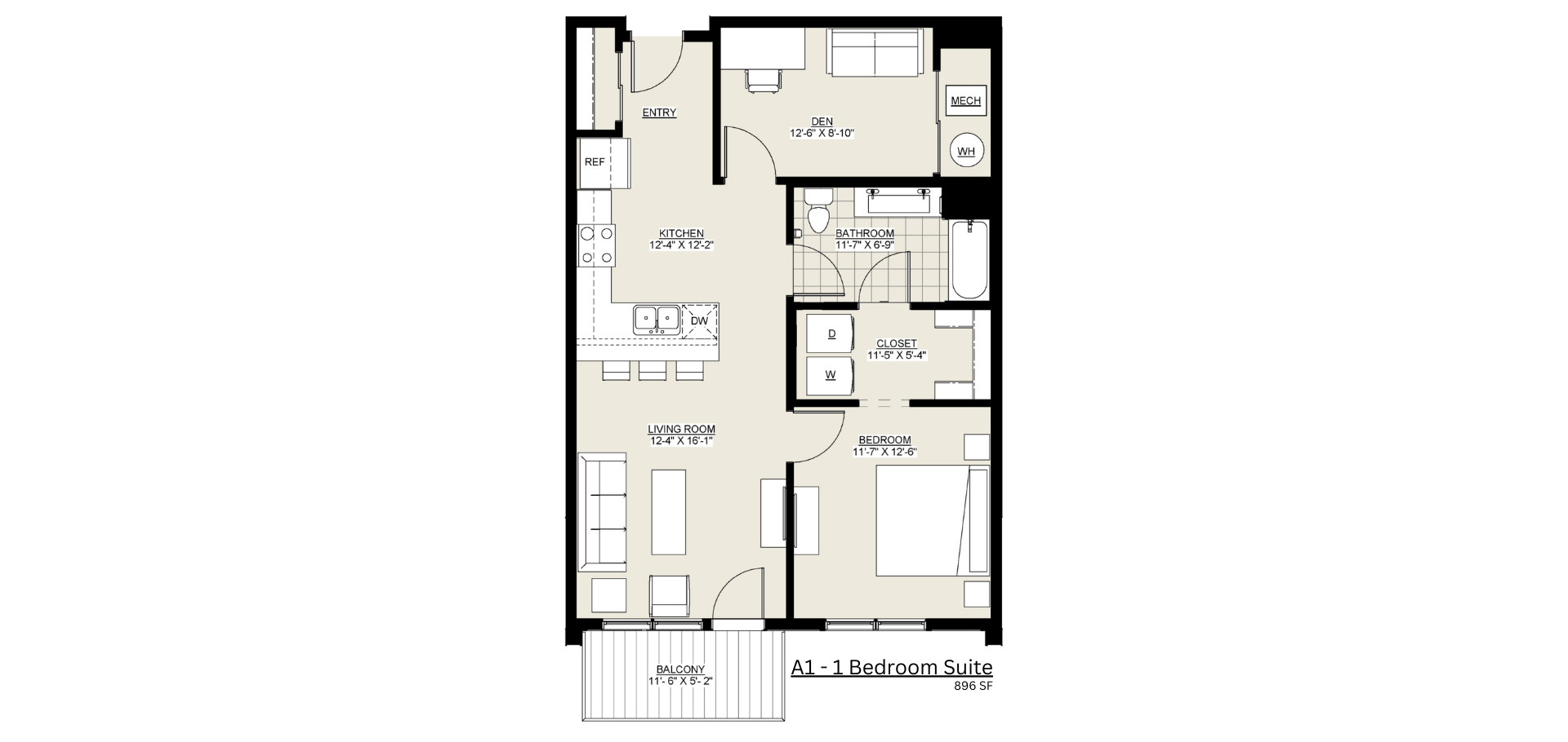 Please note: Suites do not include a traditional closet, or the closet space is designated for mechanical equipment (such as HVAC systems), and therefore cannot be used for general storage or qualify as a legal bedroom under local building codes.